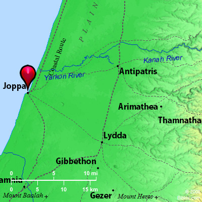 The city does not appear in the history as Philistine, so we may, perhaps, infer that it was held by the Phoenicians, the great seamen of those days. It was doubtless a Phoenician ship that Jonah found here, bound for Tarshish, when he fled from the presence of the Lord (Jonah 1:3). In Ezra's time, again, cedars were brought here for the buildings in Jerusalem (Ezra 3:7). Having been brought by messengers from Lydda to Jonathas, Peter here raised the dead Dorcas to life (Acts 9:36 f). On the roof of Simon's house by the sea, the famous vision was vouchsafed to this apostle, from which he learned that the gospel was designed for Jew and Gentile alike (Acts 10:1; 11:5).